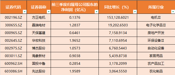 A股上市公司三季报于最后一天开始披露。航数据显示,截至10月30日21:00,共有5385家A股上市公司披露2025年三季报。其中,2887家公司利润同比增长,677家公司净利润翻倍。钢铁、有色、传媒、电子、计算机、建材等行业业绩前三季度明显回升。 677家上市公司净利润翻倍。从净利润增速来看,上述5385家上市公司中,前三季度净利润同比增长超过10%的公司有2325家,同比增长超过30%的公司有1626家,净利润同比增长超过30%的公司有677家。同比增长超过100%。剔除收益损失影响,方正电气、晶瑞电材、天宝基建、香科技、博杰股份、海象新材、国投中鲁、先达股份等公司前三季度净利润同比增长超过3000%。前三季度营收同比增幅最高的上市公司数据来源:风行其中,电机方正前三季度实现营业收入20.13亿元,同比增长10.44%;实现净利润1375.73万元,同比增长153,128.6%。先达股份前三季度实现营业收入20.08亿元,同比增长6.11%;净利润1.96亿元,同比增长3064.56%。从净利润金额来看,上述5,385家上市公司中,有2,210家公司实现净利润其中,净利润超过1亿元的企业有832家,净利润超过5亿元的企业有832家,净利润超过10亿元的企业有483家。剔除金融股影响,中国移动、中海油、贵州茅台、宁德时代、中国神华、中国建筑、美的集团、紫金矿业、中国电信等公司前三季度净利润超过300亿元。前三季度净利润最大的上市公司数据来源:空气 从行业来看,空气数据显示,钢铁、非重金属、传媒、电子、计算机、建材、电力设备、家用电器等行业前三季度营收同比增幅最大。从分红来看,截至目前,共有214家A股上市公司在发布三季报时宣布现金分红。仅10月30日晚间,就有37家上市公司发行股票sh 股息计划。其中不乏五粮液等行业龙头企业。部分企业三季度业绩明显回升,部分企业三季度业绩按下“加速键”。拓晶科技10月30日晚间披露的三季报显示,第三季度,公司实现营业利润22.66亿元,同比增长124.15%;净利润4.62亿元,同比增长225.07%。前三季度,公司实现营业利润42.2亿元,同比增长85.27%;净利润5.57亿元,同比增长105.14%。受益于产品价格企稳回升等因素,部分企业三季度业绩同比大幅增长。三季度百威报告显示,前三季度,公司y实现营业总收入65.75亿元,同比增长30.84%;净利润3041.39万元,同比下降86.67%。其中,第三季度营业收入26.63亿元,同比增长68.06%;净利润2.56亿元,同比增长563.77%。华物股份三季度数据显示,前三季度实现营业收入9.94亿元,同比增长16.55%;实现净利润4120.72万元,同比增长70.84%。其中,第三季度营业收入3.68亿元,同比增长24.34%;净利润2431.63万元,同比增长4202.15%。多家企业纷纷发布全年业绩预告。值得一提的是,截至目前,共有8家A股上市公司披露了2025年全年业绩预告。2家小幅上涨,1家下调。持续亏损,5 家不确定。 10月30日晚,立讯精密披露2025年全年业绩预告,公司预计2025年实现净利润165.18亿元至171.86亿元,同比增长23.59%至28.59%。多家上市公司三季报披露后,机构齐聚调查。从机构调查内容来看,机构更关注上市公司三季度业绩增长原因、产能、价格策略、2026年发展前景等问题。兆易创新最新披露的备案记录表显示,该公司正在接受中信证券、泰康资产、天风证券等376家机构的立案调查。公司在机构调查中表示,三季度公司业绩表现突出,得益于行业的提振。备货期紧俏,仓储周期进一步完善。展望2026年,公司将继续坚持以市场为中心的目标,抓住存储行业的螺旋上升机会;同时,积极拥抱AI,推动定制化存储解决方案逐步落地。